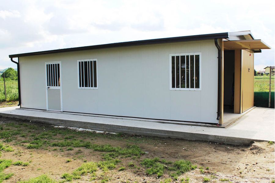Le pareti e il soffitto sono realizzati con pannelli autoportanti coibentati in acciaio preverniciato, con all’interno uno strato di poliuretano espanso ad alta densità (40 kg/m³), garantendo un eccellente isolamento termico.